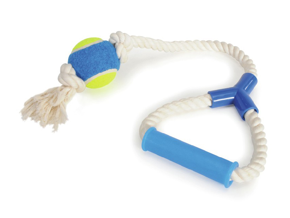 Резиновый мяч на канате с пластиковой ручкой для дрессировки.